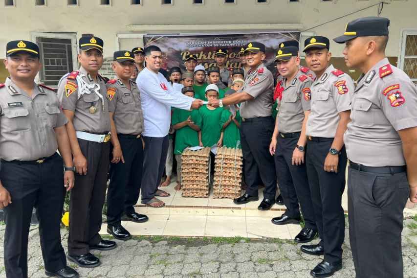 MEDAN – Siswa Sekolah Inspektur Polisi (SIP) Angkatan 55 Resimen Desaka Dhira Pradhipa asal pengiriman Polda Sumatera Utara menggelar kegiatan bakti sosial di Panti Asuhan Yayasan Ade Irma Suryani Nasution, Jalan Cik Ditiro No. 110, Kelurahan Madras Hulu, Kecamatan Medan Polonia, Kota Medan, Kamis (19/3/2026).